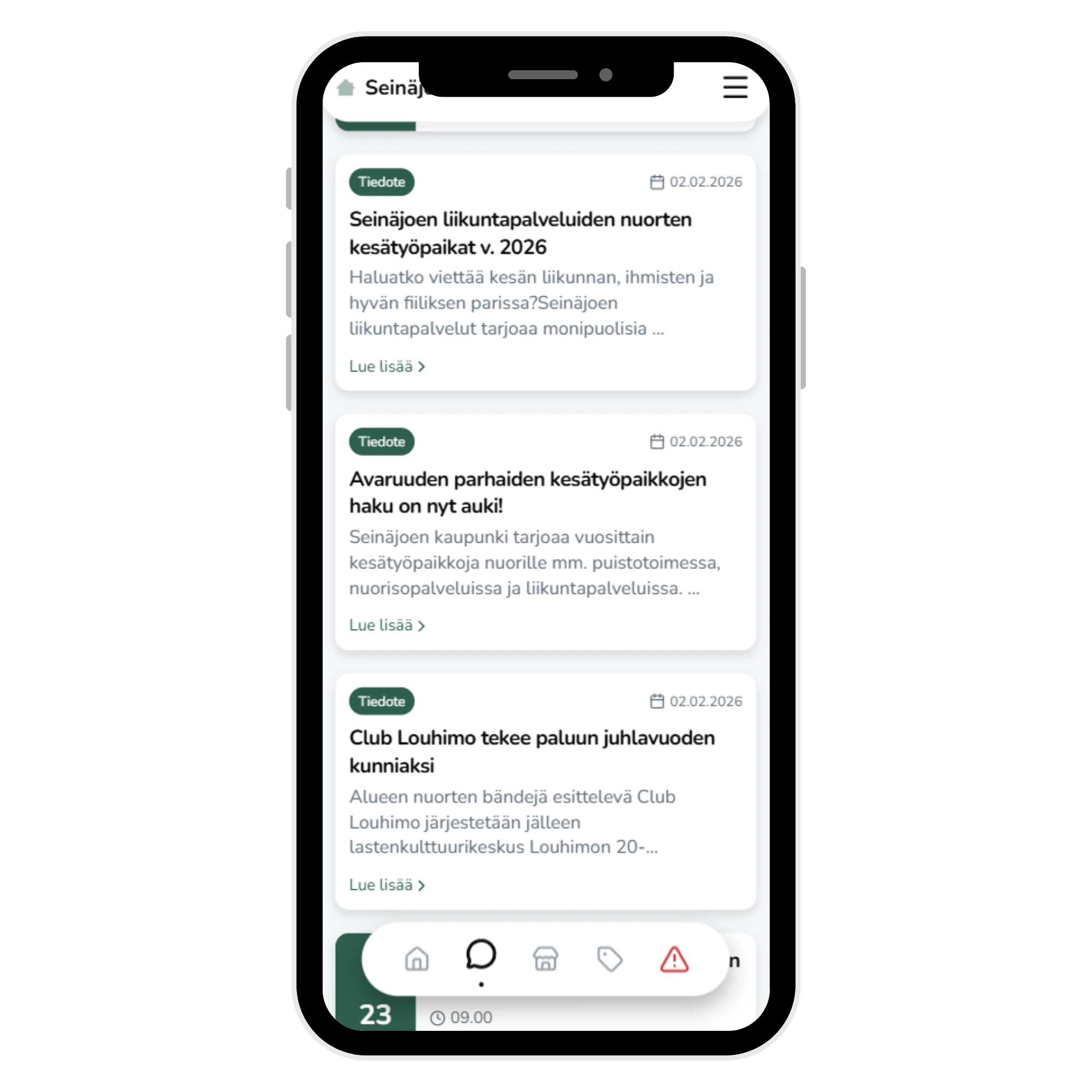 Uutiset, tapahtumat ja varoitukset tavoittavat asukkaat yhdestä selkeästä kanavasta, oikeaan aikaan.